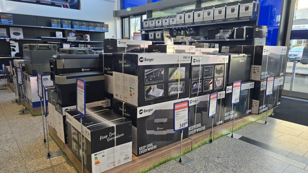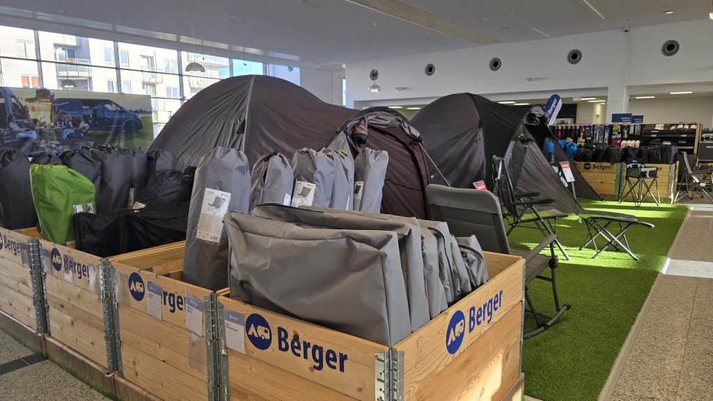 Podczas ostatniej wizyty w Berlinie i zajrzeliśmy do największego sklepu campingowego Berger w mieście — tego przy Zinndorfer Str. 4. Sklep jest naprawdę ogromny, rozłożony na dwa piętra, więc można tam spokojnie spędzić godzinę lub dwie.