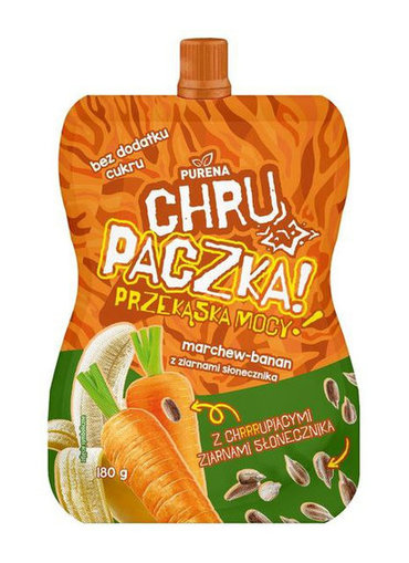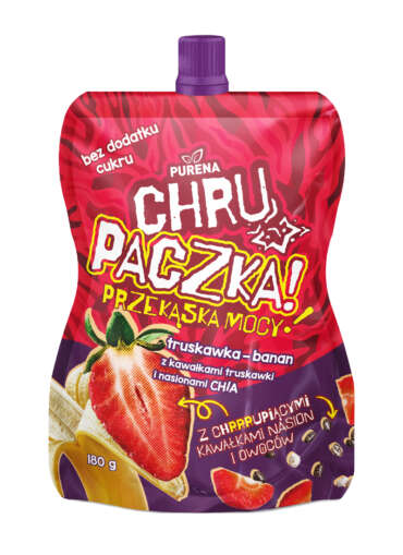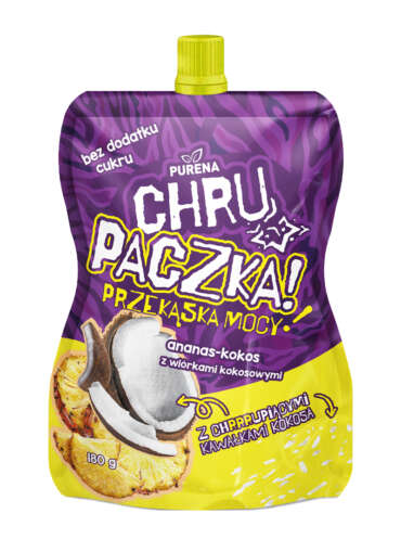 To zupełnie inna bajka niż zwykły mus. Chrupaczka to połączenie owocowego przecieru z chrupiącymi dodatkami (np. płatkami, kuleczkami zbożowymi). To genialne rozwiązanie dla dzieciaków biegających po kempingu – łapią saszetkę w rękę, mają frajdę z chrupania, a my mamy spokój, że zjadły coś wartościowego.