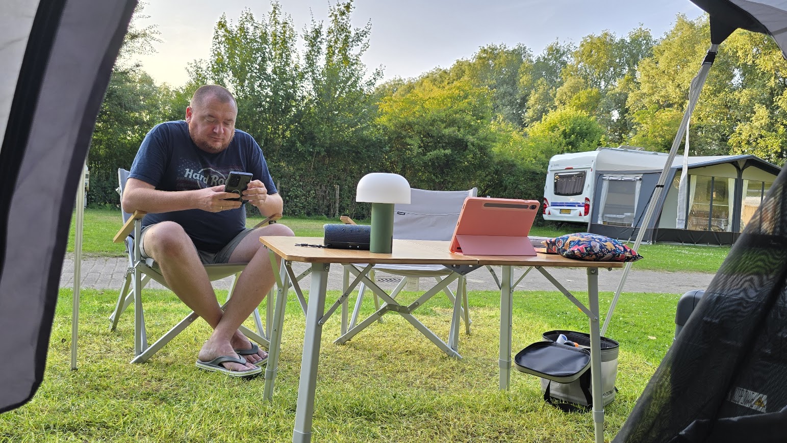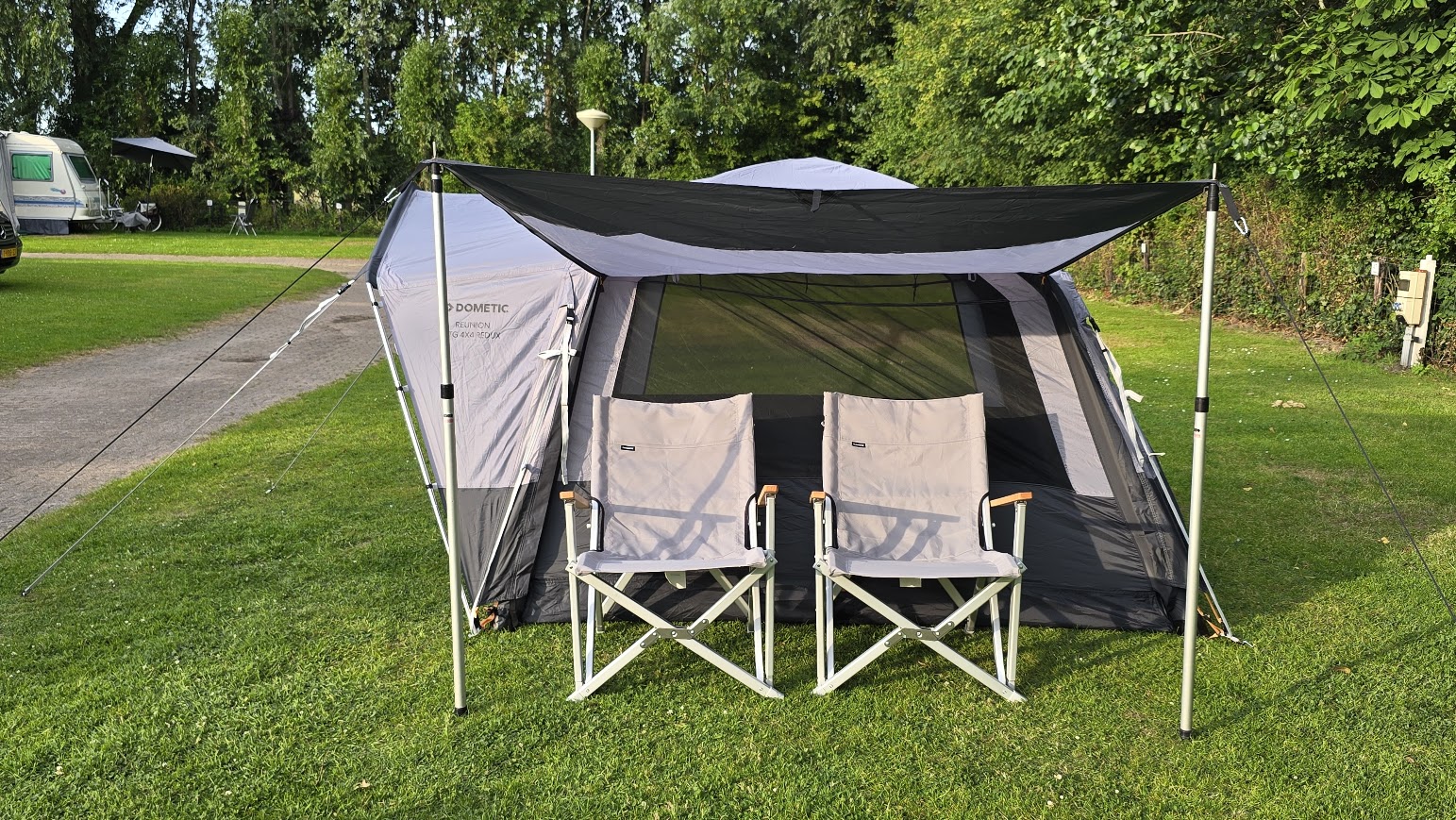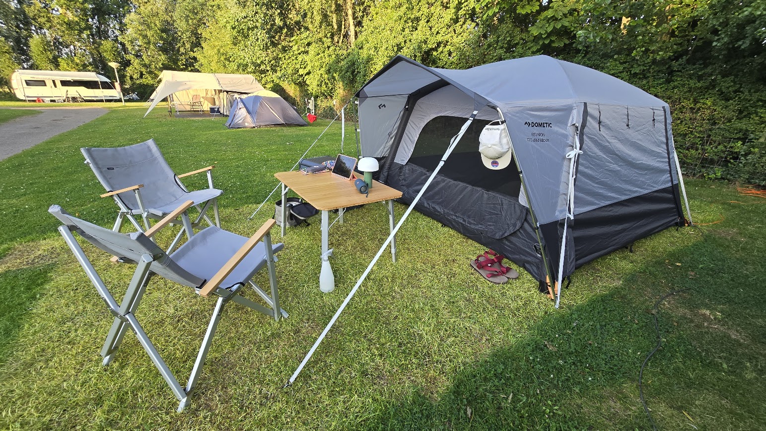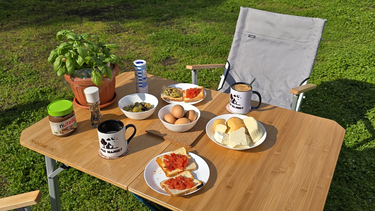 Podczas naszego tegorocznego, dłuższego wyjazdu campingowego mieliśmy okazję testować zestaw Dometic w różnych warunkach – na kempingach miejskich i tych zupełnie pośród natury, na południu Europy i podczas chłodniejszych dni. Na jednym ze zdjęć możecie zobaczyć nawet nasze wielkanocne śniadanie przed namiotem – właśnie przy tym stole, na tych krzesłach. I to chyba najlepiej oddaje, jak bardzo ten zestaw wpisał się w nasze codzienne życie pod chmurką.