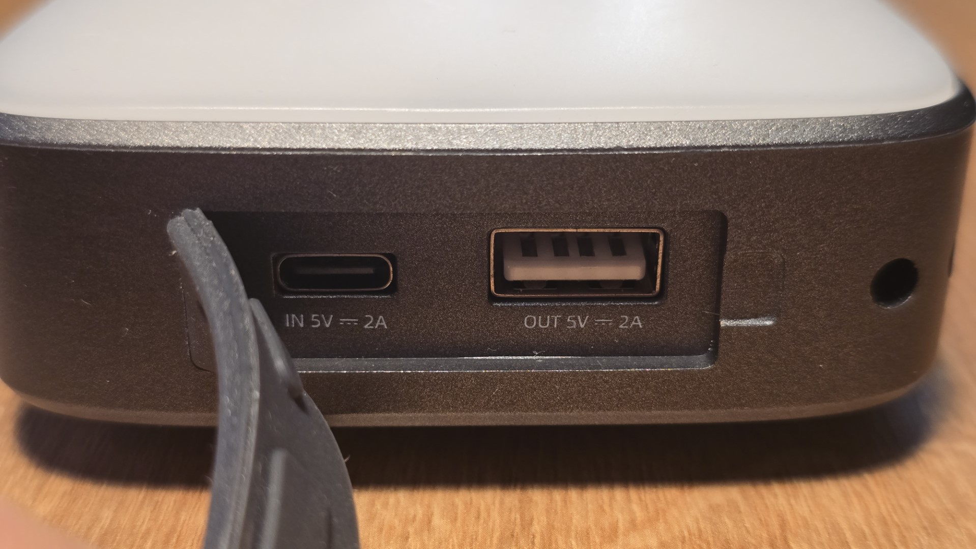 Plusem jest też wbudowany akumulator, dzięki czemu nie trzeba nosić zapasowych baterii. Campinę ładuje się przez USB — tak samo jak telefon czy powerbank — a na jednym ładowaniu potrafi działać zaskakująco długo. Na campingu to ogromna wygoda.