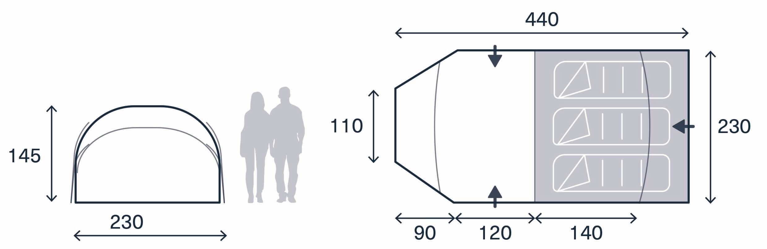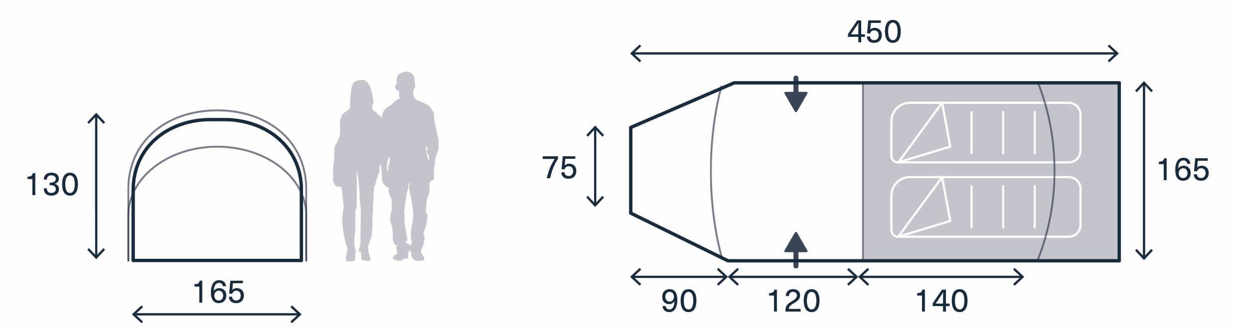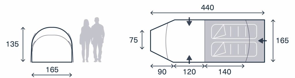 Zwykły poliester i stelaż z włókna szklanego. Tańsza, dostępna w dwóch kolorach. Idealna na weekendy, festiwale i spokojne wyjazdy. Wersja 2-osobowa waży 5,95kg a 3-osobowa 7,7kg.