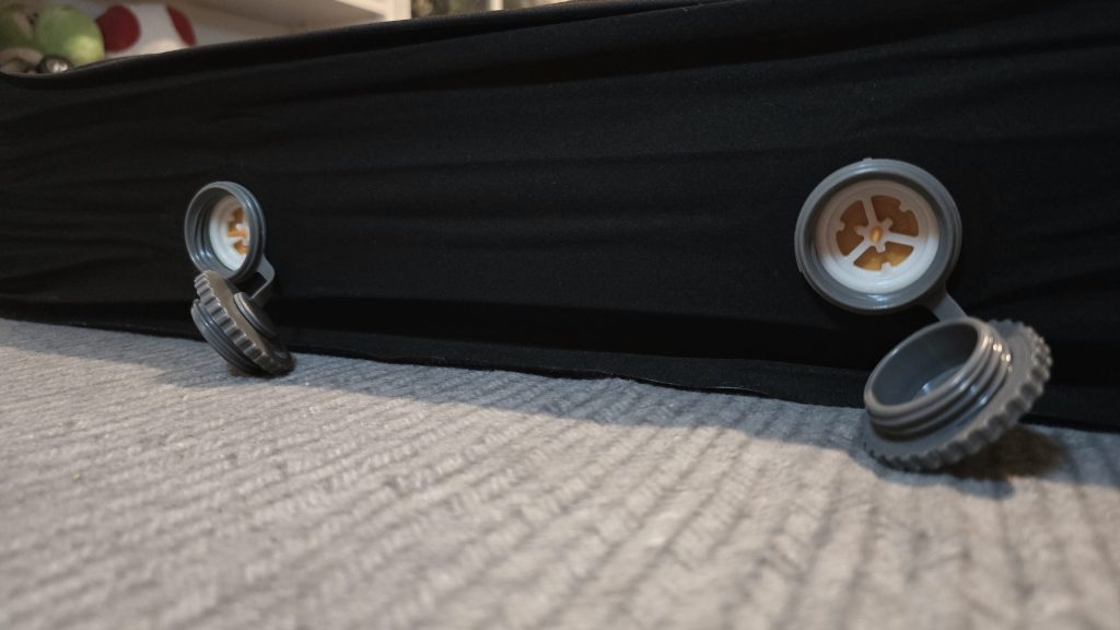 Mata została wyposażona w dwa zawory, które umożliwiają szybkie napełnianie i wypuszczanie powietrza, dzięki czemu rozkładanie i pakowanie zajmuje naprawdę mało czasu. Dodatkowo można regulować twardość, dopasowując stabilność materaca do własnych upodobań.