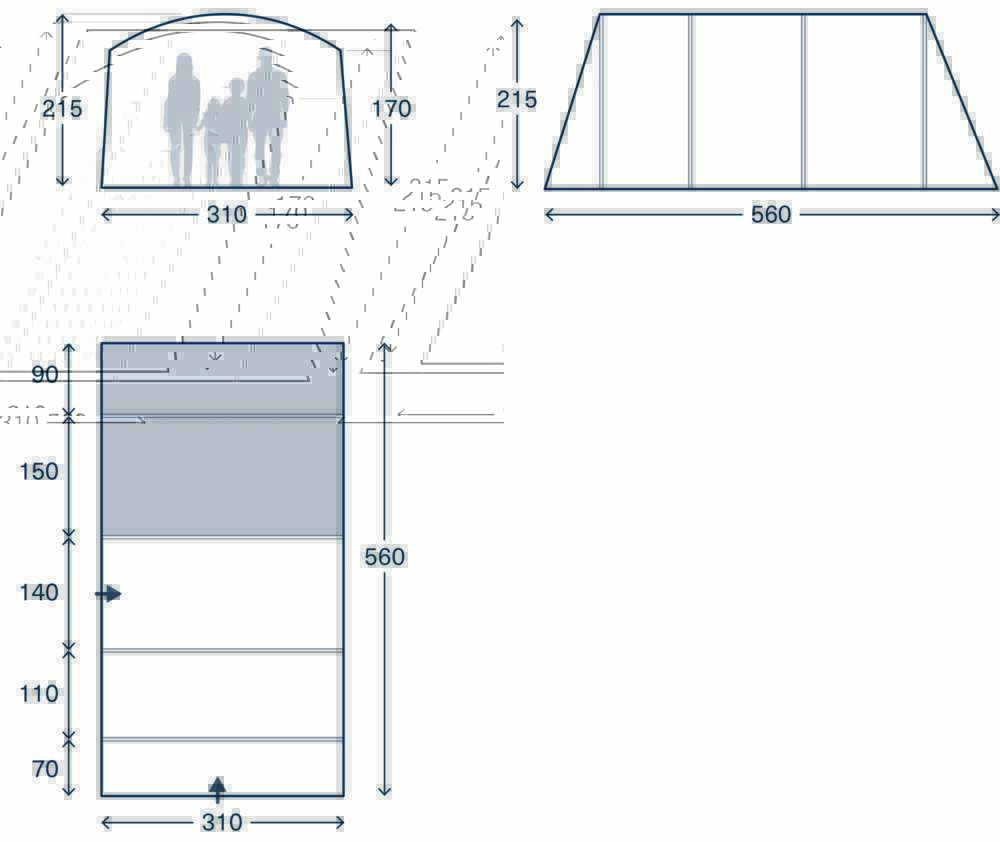 Rockliffe łączy luksusową tkaninę z niezawodnym systemem nadmuchiwanym. Dzięki pasom Quick-Pitch oraz zintegrowanym pasom sztormowym (Storm Straps), namiot stoi pewnie nawet w trudniejszych warunkach. Konstrukcja oferuje pełną wysokość stania w całym namiocie oraz duży przedni daszek z dopinaną osłoną prywatności (Privacy Screen), co tworzy idealną strefę do odpoczynku w cieniu.